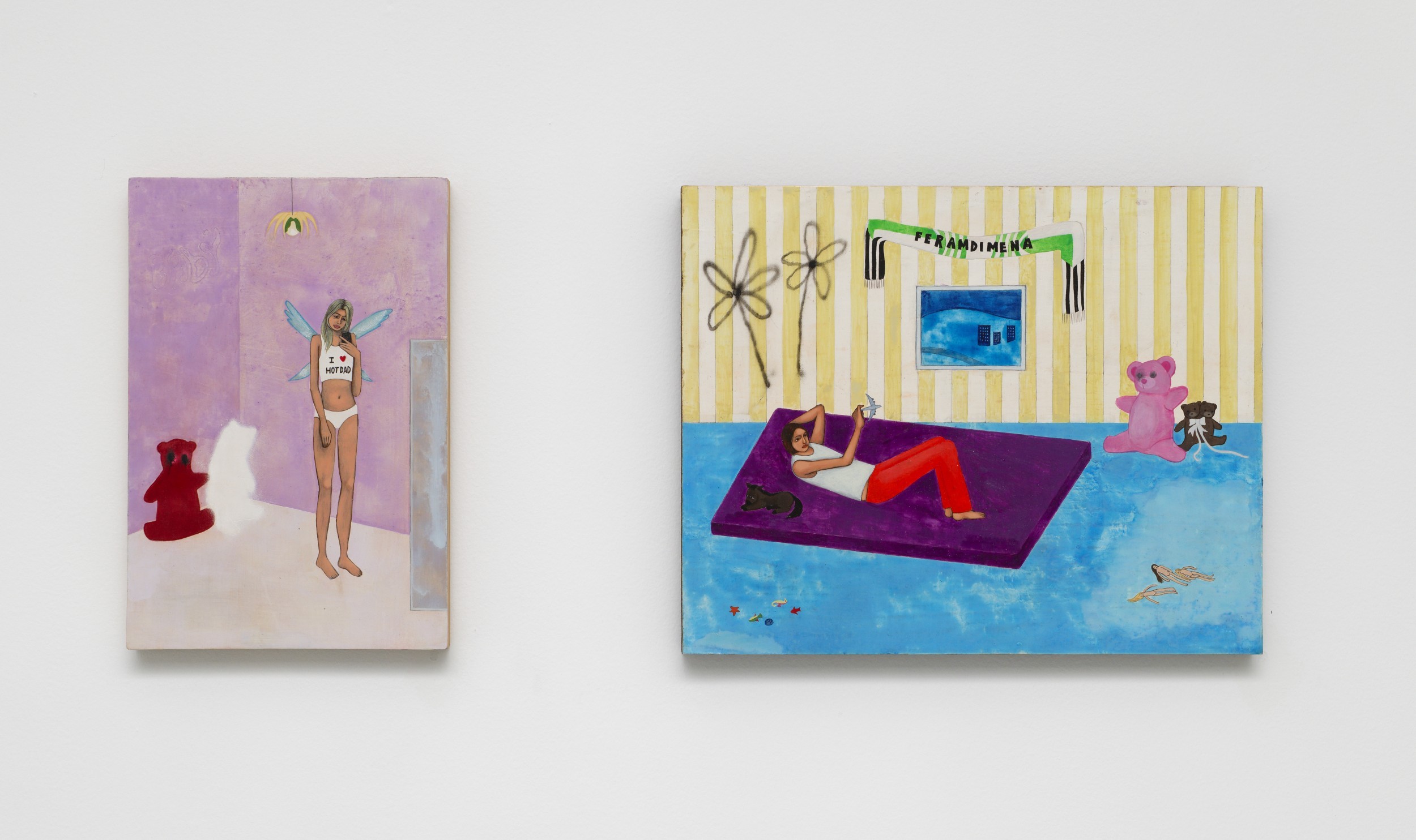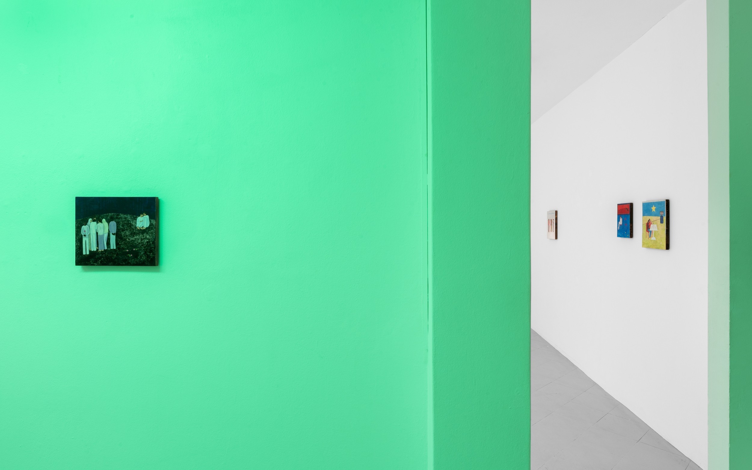 Graduated from the Beaux-Arts of Cergy, FR in 2021, Amélie Bigard develops an artistic practice that takes shape mainly with painting, but also with video and installation. In parallel to her studies at the École des Beaux-Arts de Marseille in 2018, she is training as an icon painter at the Church of the Dormition with an iconographer. She then spent a year in Berlin as an assistant to the painter Helen Verhoeven before continuing her studies at the Beaux-Arts of Paris-Cergy, FR. Borrowing from the art of the icon the technique of tempera on wood, the use of gold leaf or the quasi-religious postures of her subjects, she presents «icons of a godless world», which seem to find refuge in the meeting and the game. In 2022, she presented her first solo exhibition at the Consulat Voltaire in Paris and a second solo exhibition at the Studiolo gallery in Milan. She also exhibited at Chapelle 14 gallery and at Le Palais des Beaux-Arts in Paris, at the Espace à vendre gallery in Nice, at the Tatiss gallery in Lyon for the 16th edition of the Biennale and at the Sapling gallery in London. She was in residence at Maison Artagon (2022), at the Consulat Voltaire (2022), at La Folie Barbizon (2022) as well as at l’Orfèvrerie (2021) and will carry out a residency in 2023 at Therapeia Art Residency in Greece. In 2021, she is one of the two winners of the Artagon scholarship in partnership with Adam & Lavrut. In 2023, she presented “Playground Love” a duo show with Renaud Artaban in Le Salon at DS Galerie. That same year, Amélie Bigard won the ADIAF Émergence 2023 Prize and was a finalist in the Prix des Amis du Palais de Tokyo.