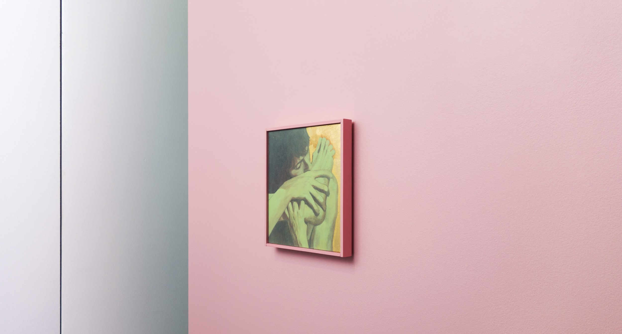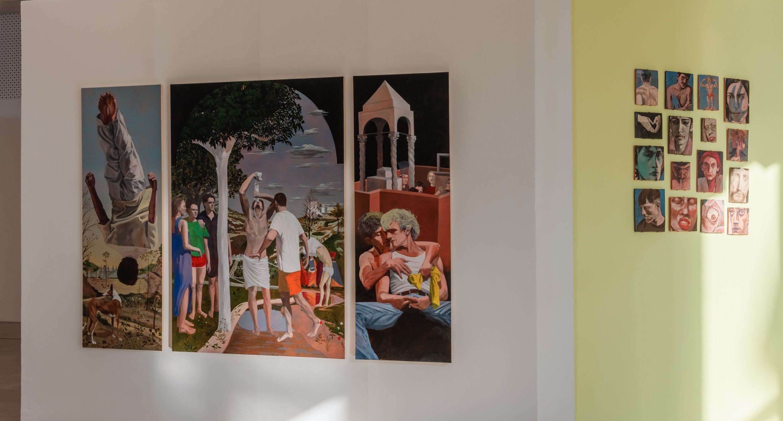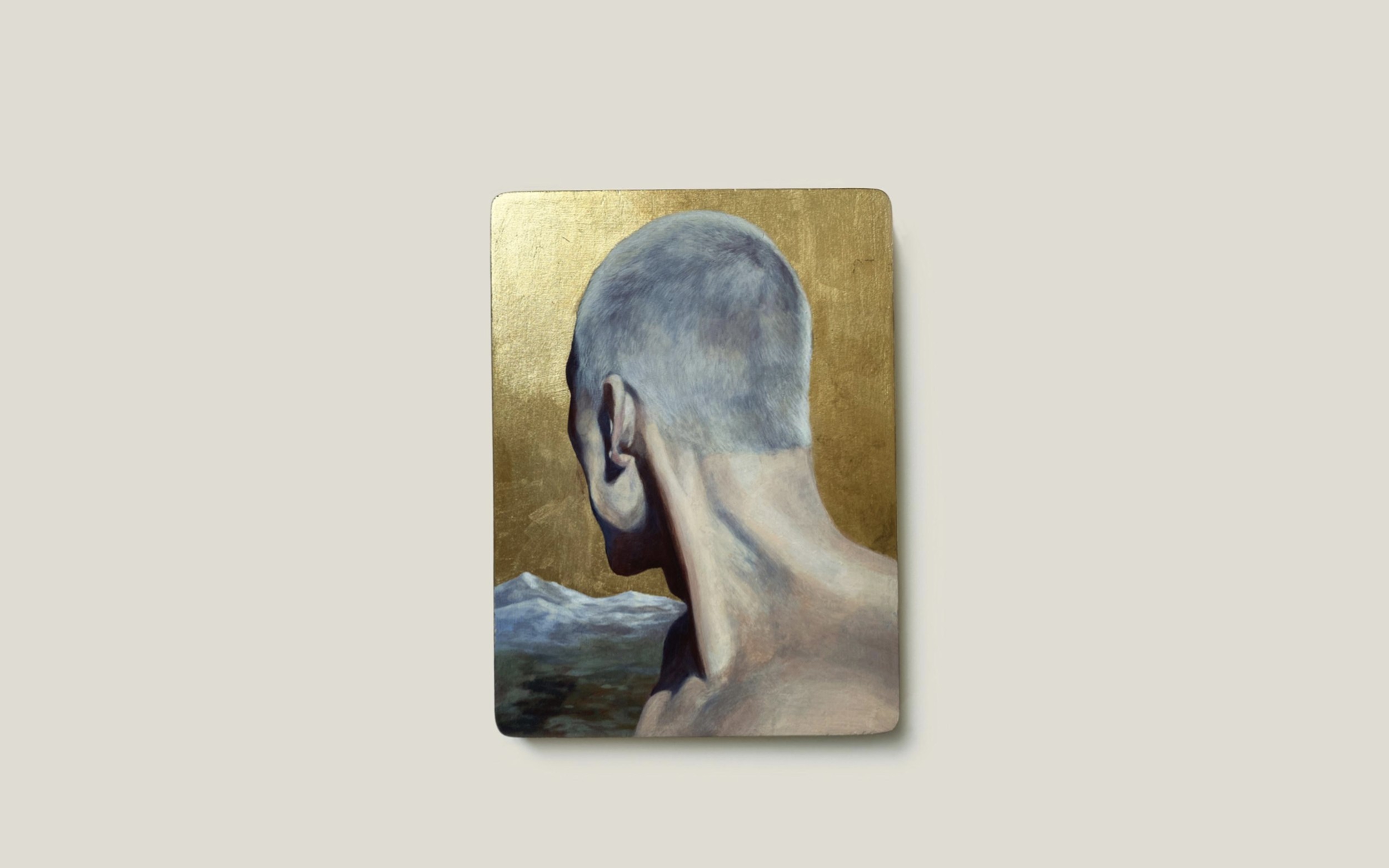 Clément Bataille is a self-taught painter and ceramist. After studying art history at the École du Louvre and spending a number of years in Berlin, he now lives and works in Paris. Marked by his Catholic upbringing, his paintings combine hallucinatory close-ups, overexposed portraits and moments of intimacy. They stand out against sober, even plain, draped or luminous backgrounds. Taking the metallic backgrounds from icons, his painting cuts off shadow from light, mimicking the original gesture of creation. Religious in form, secular in subject, his works allow him to domesticate personal ex-votos that humorously subvert the gestures traditionally represented: lips are closed, heads concealed, faces turned away. Clément Bataille’s work has already been shown in a number of exhibitions in Paris, Saint-Denis, Marseille, Milan and Berlin. Recently, Clément Bataille illustrated the short story Journal d’ascétisme by Émilien Rouvier, published by Éditions du Chemin de Fer, Paris (2023).