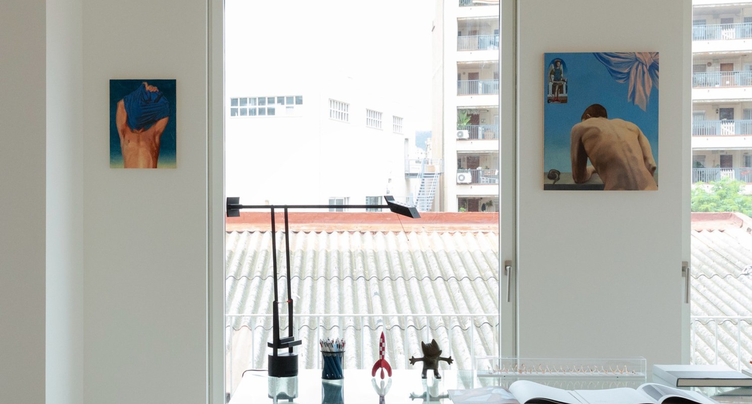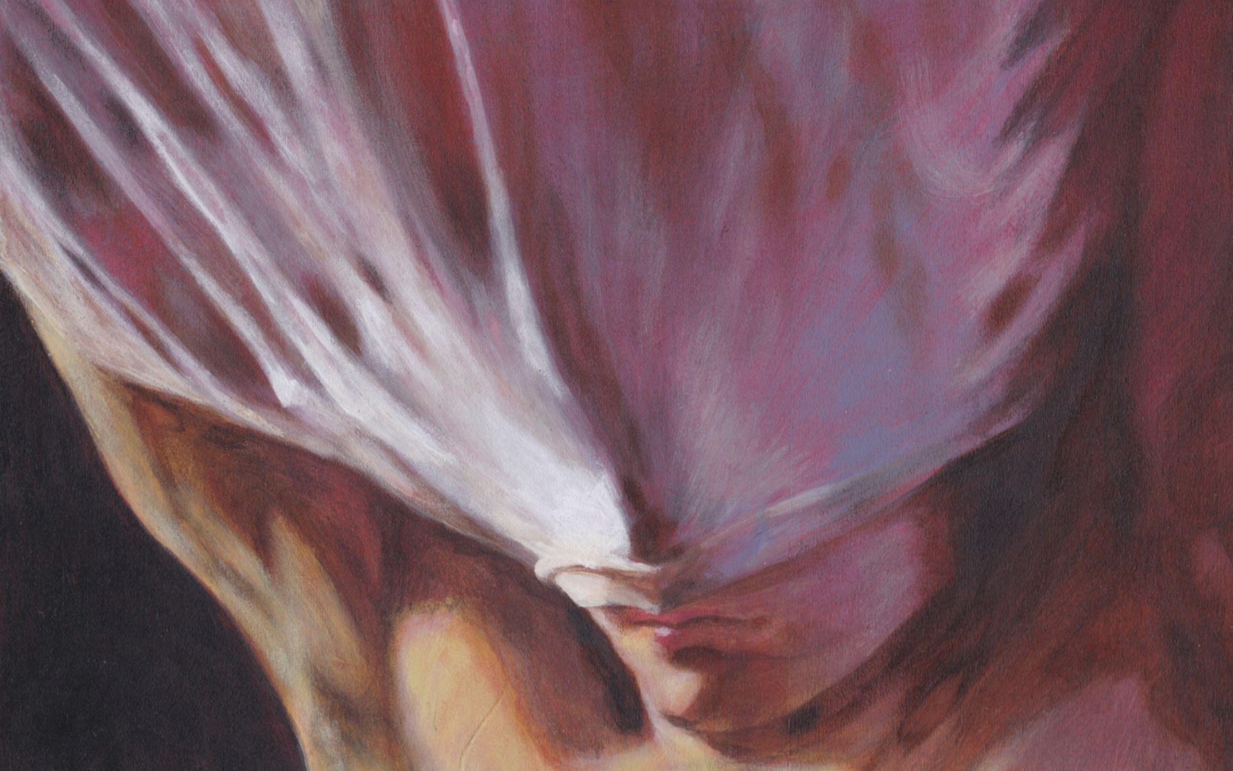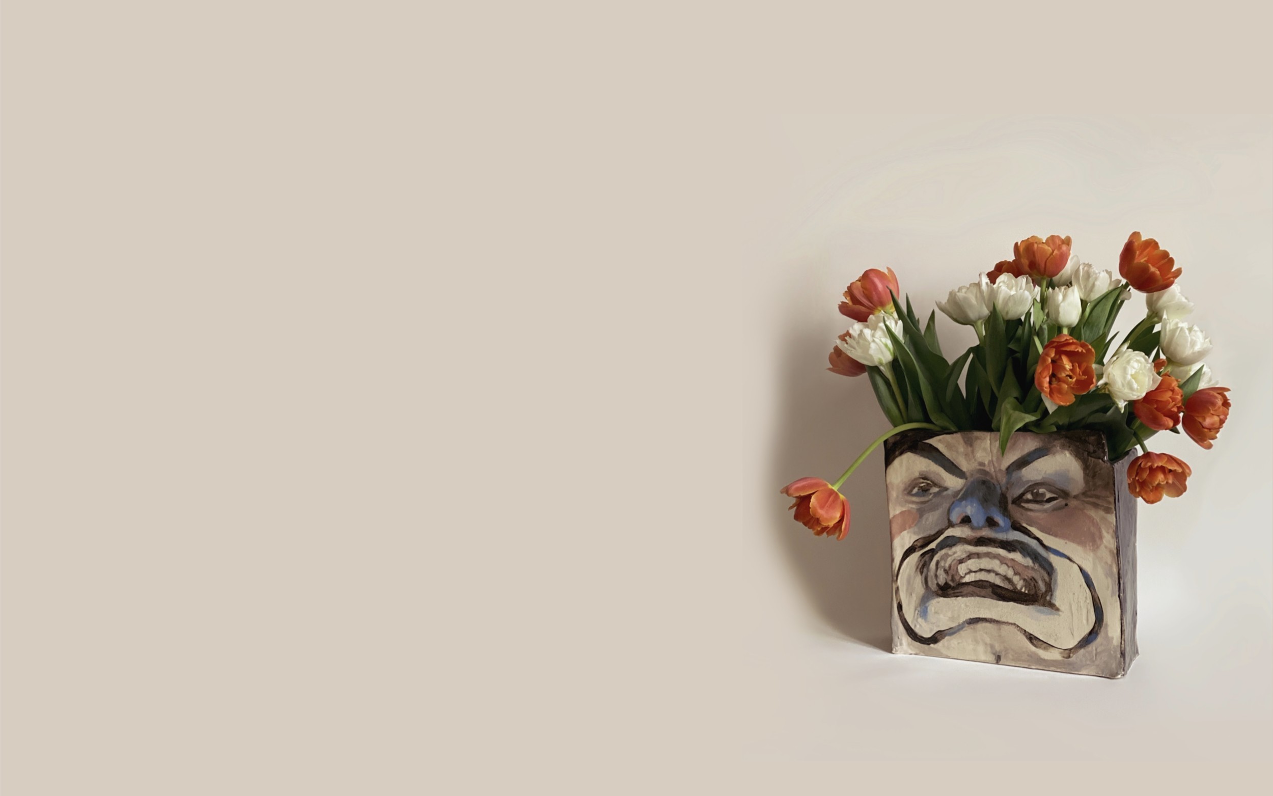 Clément Bataille is a self-taught painter and ceramist. After studying art history at the École du Louvre and spending a number of years in Berlin, he now lives and works in Paris. Marked by his Catholic upbringing, his paintings combine hallucinatory close-ups, overexposed portraits and moments of intimacy. They stand out against sober, even plain, draped or luminous backgrounds. Taking the metallic backgrounds from icons, his painting cuts off shadow from light, mimicking the original gesture of creation. Religious in form, secular in subject, his works allow him to domesticate personal ex-votos that humorously subvert the gestures traditionally represented: lips are closed, heads concealed, faces turned away. Clément Bataille’s work has already been shown in a number of exhibitions in Paris, Saint-Denis, Marseille, Milan and Berlin. Recently, Clément Bataille illustrated the short story Journal d’ascétisme by Émilien Rouvier, published by Éditions du Chemin de Fer, Paris (2023).