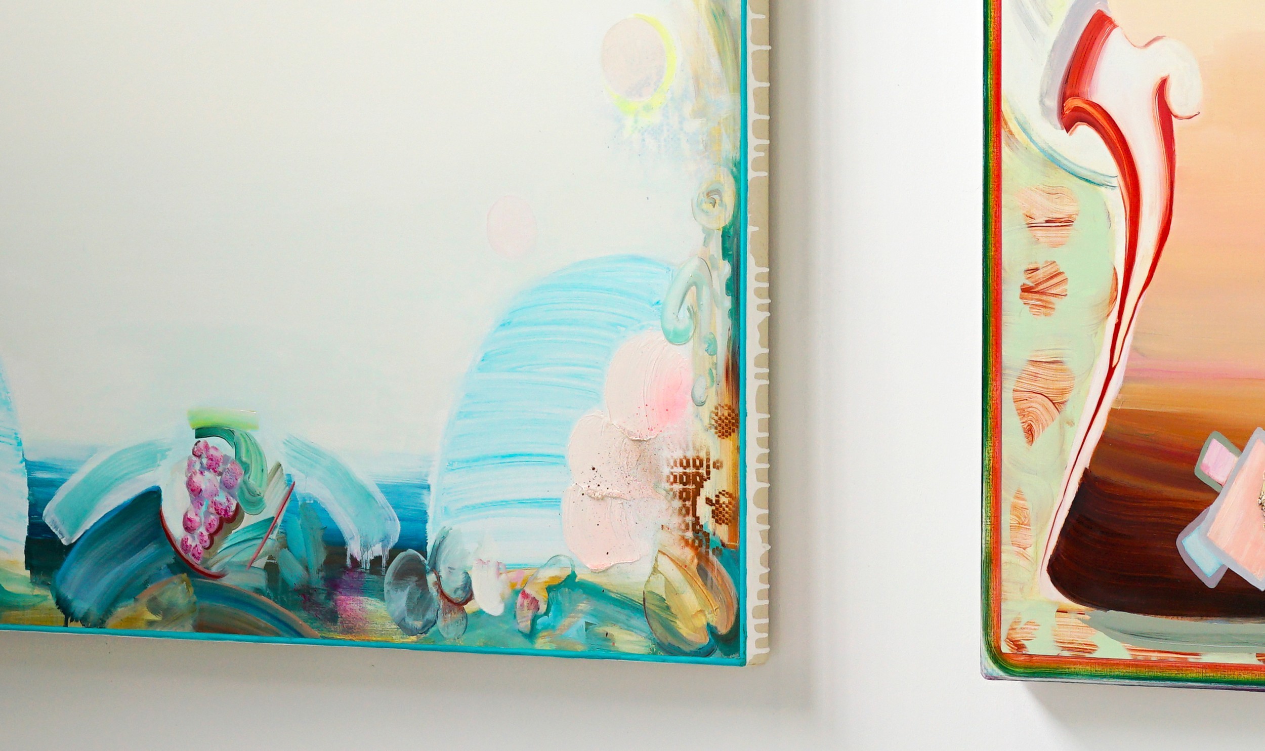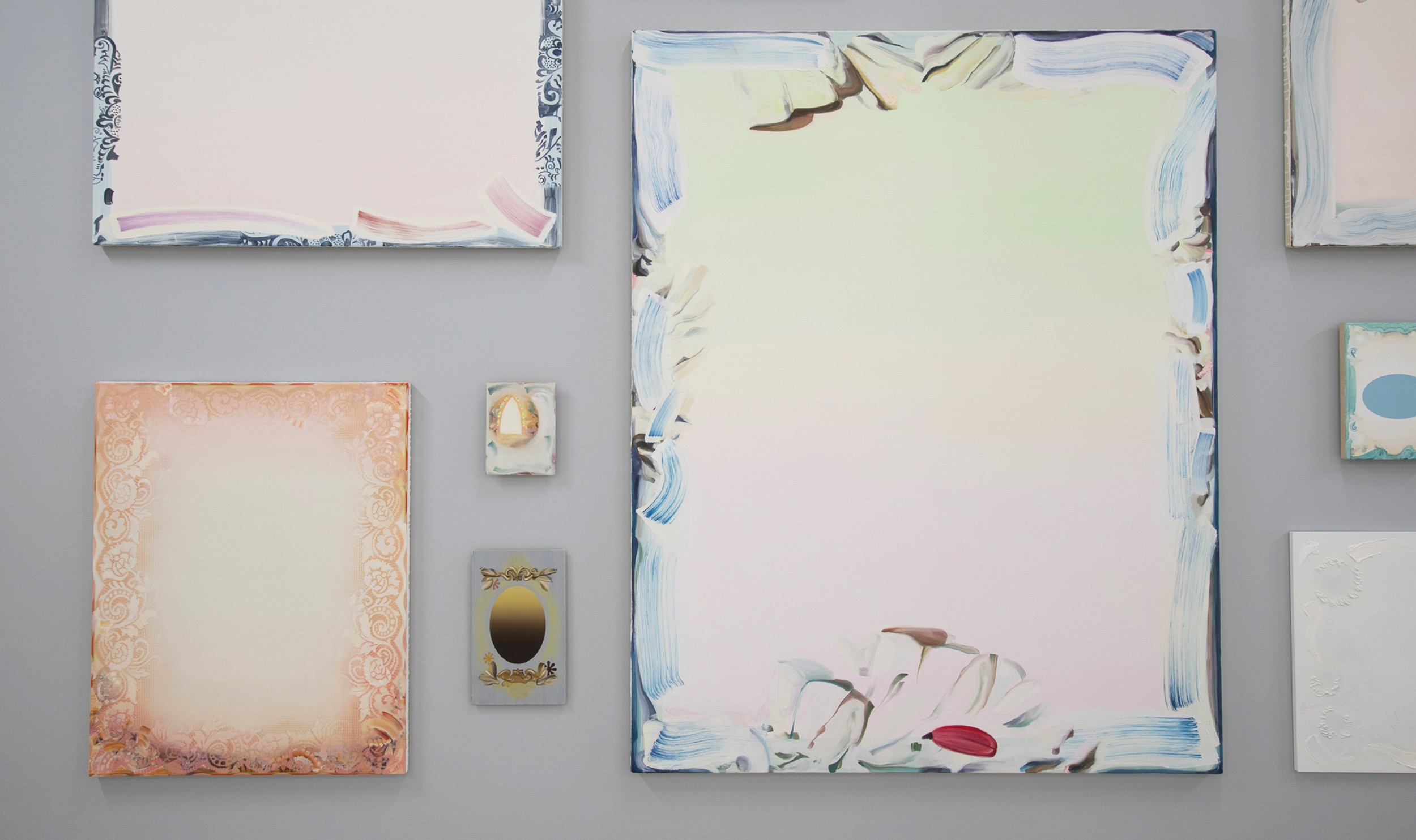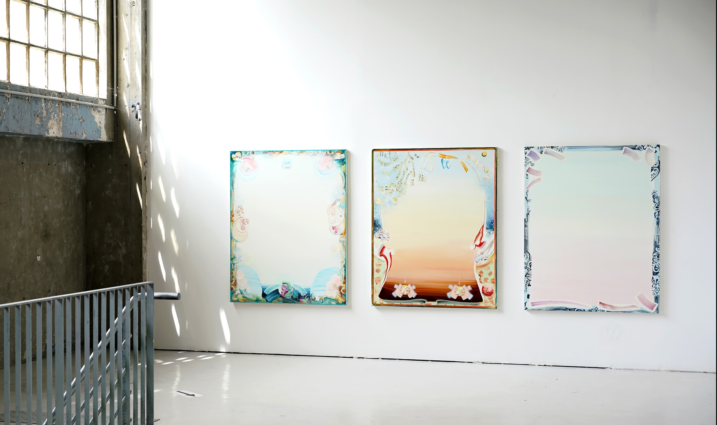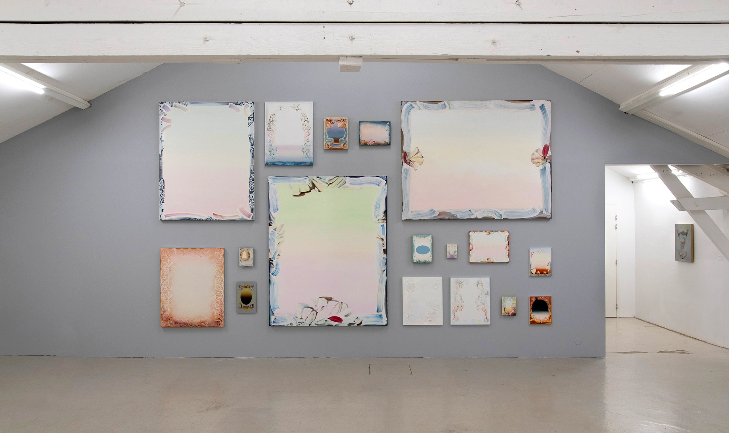 Marijke Vasey is an Anglo-Belgian artist who lives and works in Saône-et-Loire (FR). She is a graduate of Goldsmiths College, London (2019). Marijke Vasey examines the relationship between painting and decoration, whether it be opulent 18th century symbolism or current, digital, floating imagery. The artist proposes a new look at the status of decorative embellishment, focusing on the role of the frame in the context of painting. As such, painted frames act as disruptive agents, encroaching from the edges of the canvas on the near-monochromic purity of the ‘Turneresque’ tinted surfaces they surround. Marijke Vasey’s work has already been exhibited in the UK, Belgium, the Netherlands and France. She has been selected for FBA Futures (2020) and Jeune Création at the Fiminco Foundation in Romainville (2021). Recently 19 Crac, the art centre in Montbéliard, devoted a solo show to her entitled “Rococo Disco” (2022). In 2024, Marijke Vasey will present her first solo show at DS Galerie.