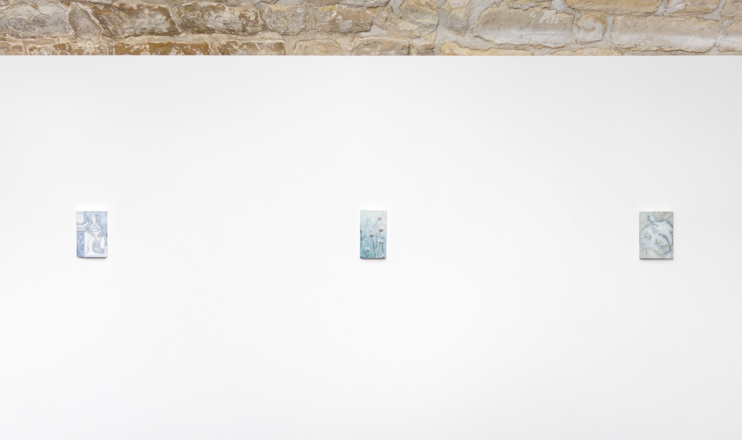 Oscar Lefebvre is a painter who graduated from the École des Beaux-Arts de Nantes (2021). His paintings are the result of a process of decanting personal images. If these images are a starting point, they are quickly forgotten and are only a pretext for the pictorial gesture. Some details are extracted and become subjects: dazzling halos, faces or singular objects appear as traces of a world that is certainly in decay, but which fascinates. These subjects, between portrait, landscape and still-life painting, illuminate areas of uncertainty, as if the situations observed were going to change or disappear. A succession of transparent layers in strokes reveals and conceals vibrant images whose nature is ambiguous. Often of small or medium format, Oscar Lefebvre’s paintings are composed when hung in sets that offer new readings. Oscar Lefebvre has participated in several group exhibitions, notably “Peintures Petits Beurres” at the galerie Maïa-Muller, “Traverser les silences” at Editions Dilecta (2022) and “Poltergeist” at the Assaut de la menuiserie in Saint-Étienne (2023). Recently, he was exhibited at the MOCO la Panacée as part of the exhibition “IMMORTELLE vitalité de la jeune peinture figurative” (2023). In the same year, he presented “Chiens de faïence” in the Salon space at DS Galerie.