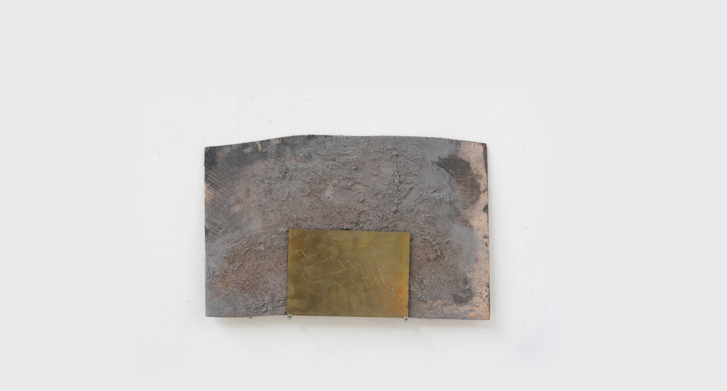 Brass, volcanic sands and earths, clay, dry desert plants, soot, plywood