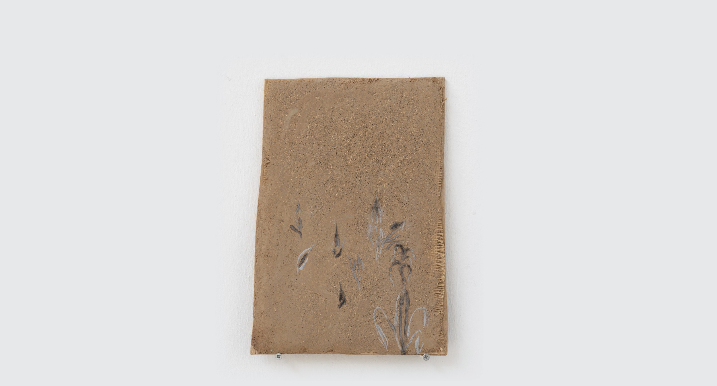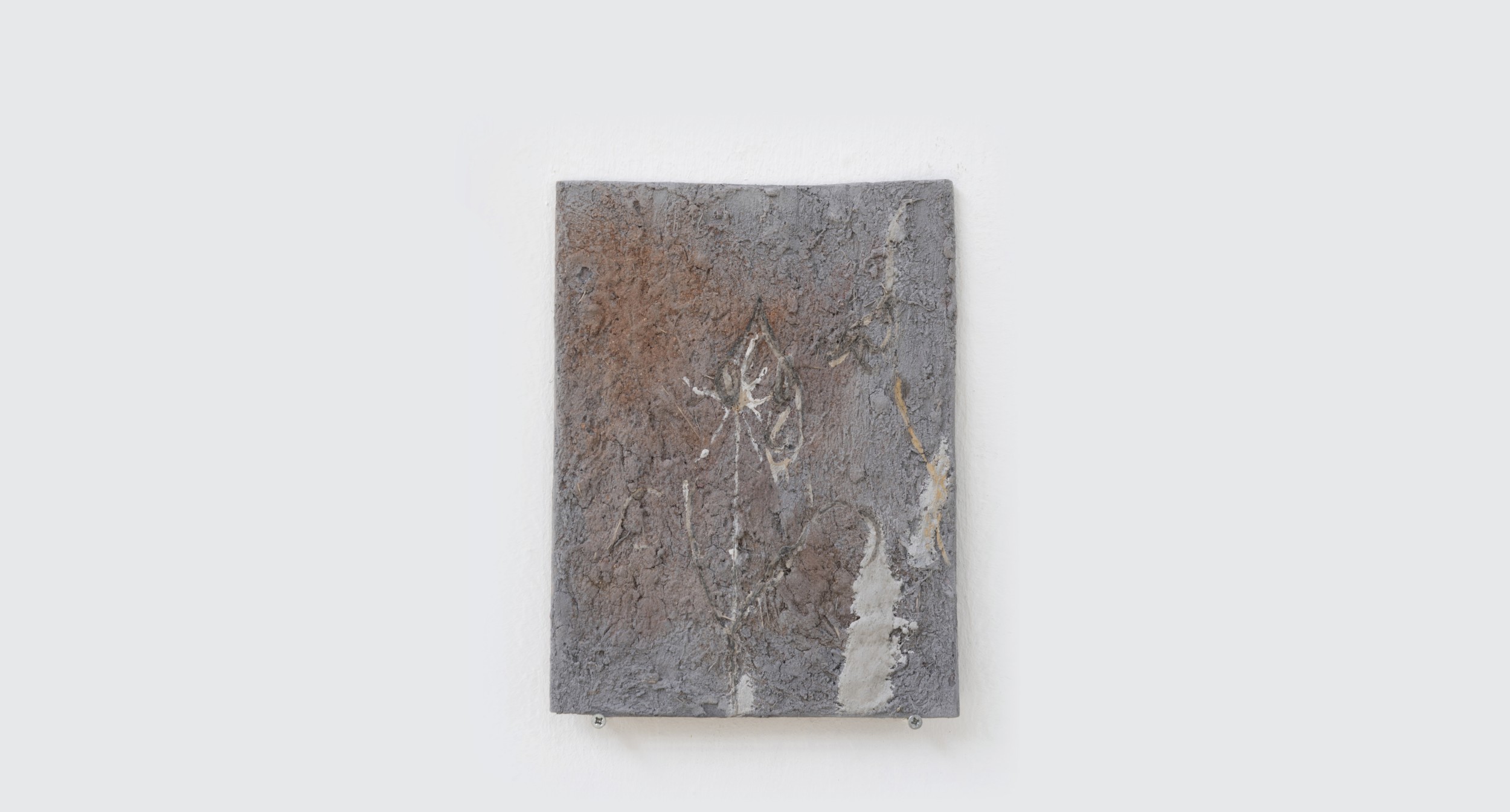 Pigments, clay, lime, Atermisia Vulgaris infused linseed oil, volcanic sand, soot, straw, jute canvas, pinewood