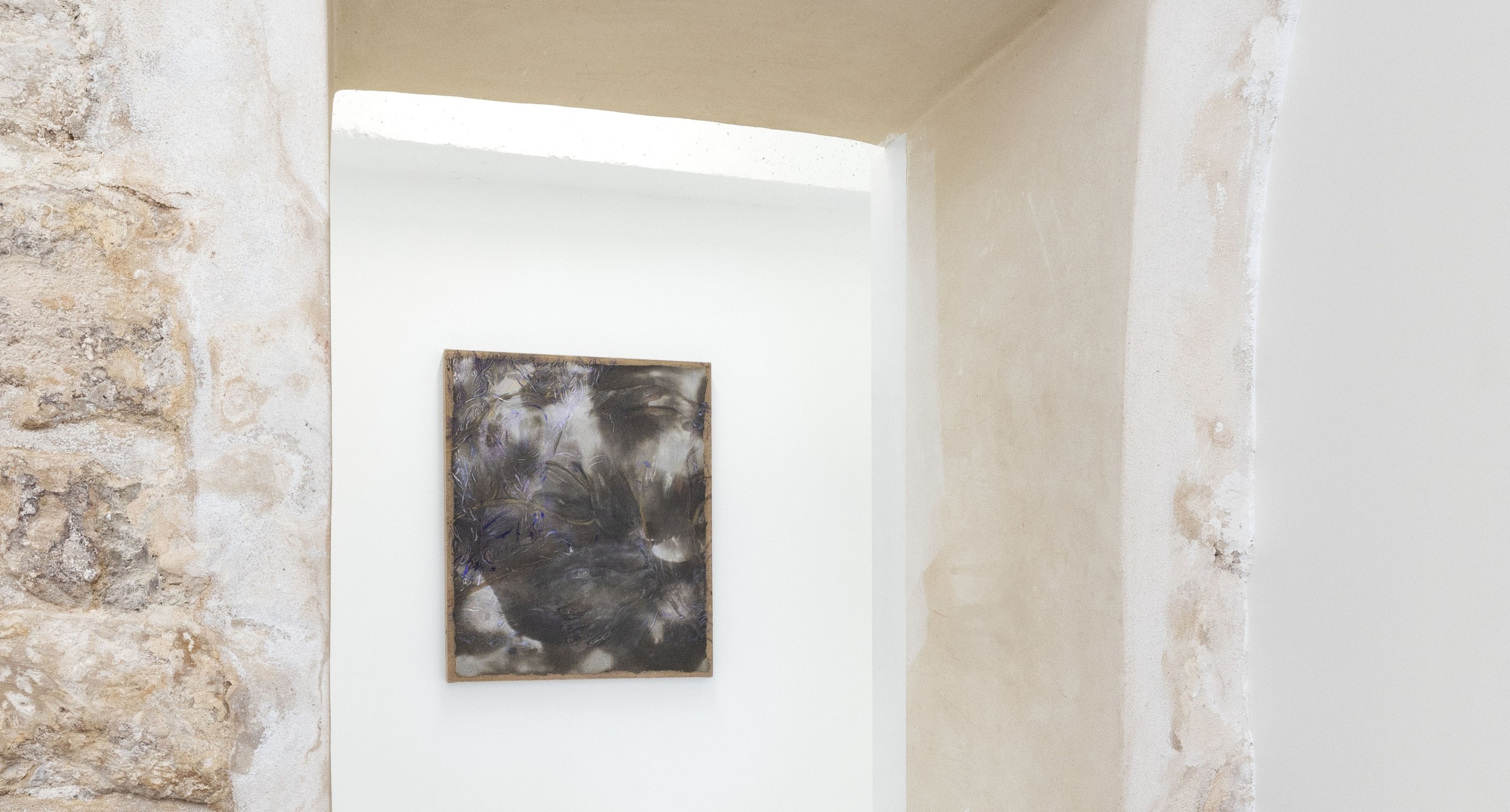 His practice invokes elemental materials, which are present in all his pieces. The artist sources all his materials himself, from the beaches of Naples to the volcanic soils of Lanzarote. He then paints with natural pigments, which he also harvests, to create paintings whose colours come from the earth and return to it through his gesture.