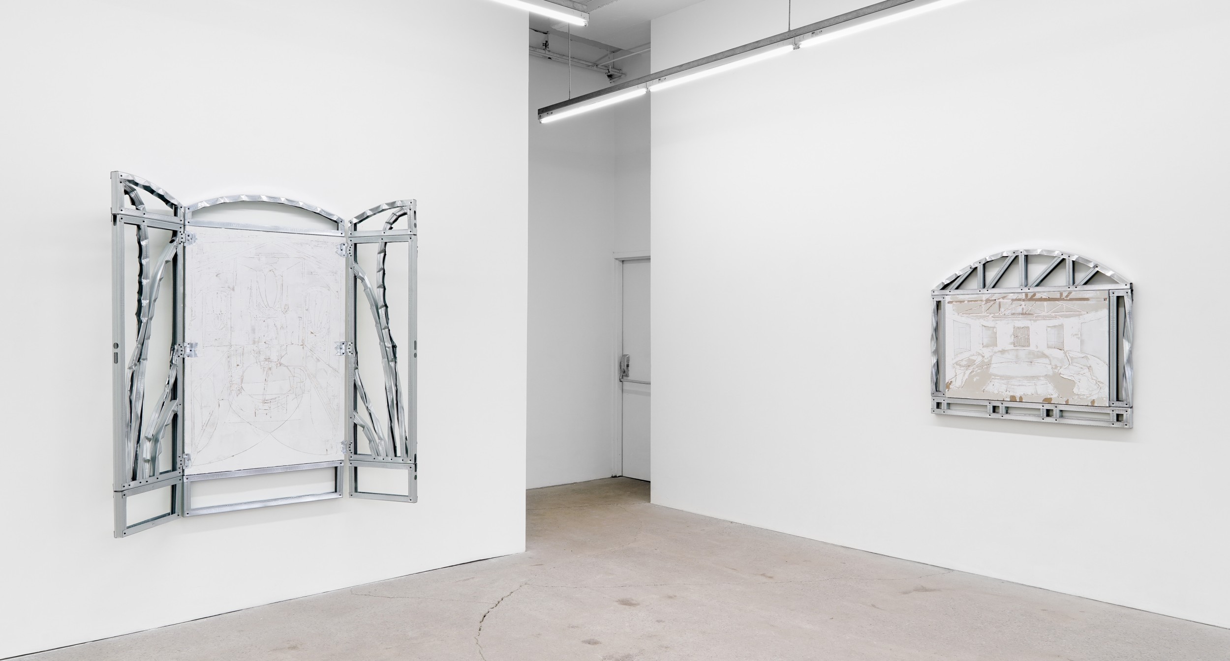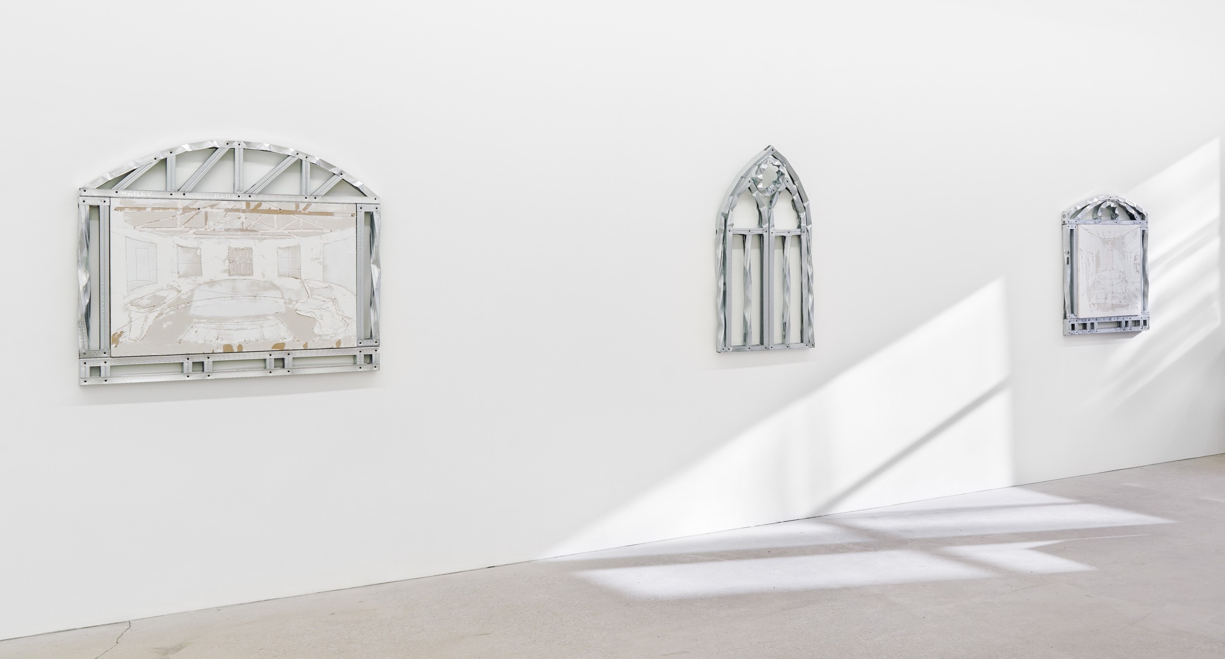 Simon Petepiece est un artiste autodidacte qui travaille directement avec des matériaux et des processus de construction. Sa pratique aborde la qualité symbolique des espaces architecturaux et en tire une signification. En créant des œuvres qui combinent la sculpture, la peinture et le dessin, il explore la façon dont l’environnement bâti témoigne et reflète nos croyances culturelles, nos valeurs et notre histoire. Ayant précédemment travaillé en tant qu’architecte, la matérialité est au cœur de sa pratique artistique. Cela se ressent à la fois dans l’assemblage physique de son travail et dans la nature construite de ses dessins qui jouent avec les conventions de la perspective. Travaillant principalement avec des cloisons sèches et des montants en acier, deux éléments utilisés pour construire des murs, ses œuvres d’art révèlent les propriétés évocatrices de matériaux qui ne sont pas destinés à être visibles. Dans ses projets les plus récents, son travail combine ce langage matériel avec des formes et des détails issus de l’architecture religieuse. Il explore en particulier les éléments iconographiques et narratifs des espaces chrétiens et leur lien avec la peinture et la sculpture dévotionnelles. Dans ces œuvres, la qualité anthropomorphique des espaces est intensifiée : les meubles, les fenêtres et les colonnes étant imprégnés de connotations sacrées.