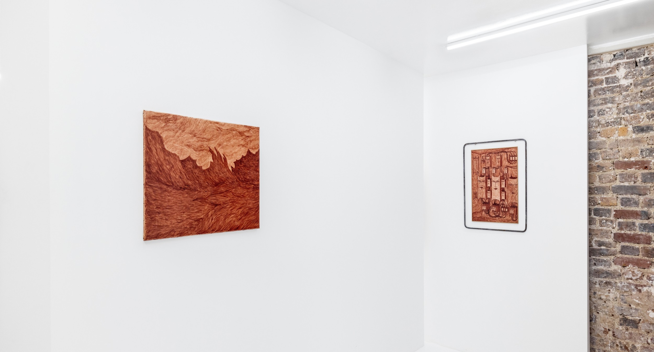 Alison Flora peint et dessine sur toile et sur papier. Sa palette colorée se décline en tonalités de pourpres et de vermillons, tirant parfois sur le rose clair, le rouge cerise, le lie-de-vin ou parfois même des nuances de terre, lorsque le temps a travaillé la matière. Son trait précis, souvent sinueux, donne vie à des figures spectrales qui nous sont familières car elles nous hantent depuis l’enfance et depuis l’origine de toutes les civilisations : des monstres qui sèment la peur mais qui peuvent incarner la bienveillance ou la protection, des chimères ressuscitées de l’iconographie médiévale ou inspirées de l’heroic fantasy, mais aussi des formes héritées de l’univers du black métal et des artistes symbolistes de la fin du XIXᵉ siècle. Le corps de l’artiste, les traces de son implication physique, sont palpables dans la totalité de ses dessins et de ses peintures. Comme un gisement ou une source, celui-ci fournit la matière organique principale à laquelle s’ajoute, pour conserver la couleur, du sel. Le sang ne peut être prélevé qu’à condition que l’artiste apporte attention et soin à son enveloppe physique et respecte un délai nécessaire pour laisser le temps à son propre corps de produire assez de liquide vital. Se met ainsi en place un cycle constitué d’une période de repos et de récupération de la chair, alternant avec une phase de ponction de l’humeur substantielle, dont nous observons ici les transmutations en images et en œuvres. “Solve & Coagula”, le titre de la première exposition personnelle de l’artiste à la DS Galerie, fait état d’une quête de l’équilibre des forces contraires via la transformation, dont le résultat serait la création de la pierre philosophale. Connue aussi sous le nom du Grand Œuvre alchimique, le processus de fabrication de celle-ci peut-être assimilée à la conception d’une œuvre d’art. Tous deux sont des émanations de l’esprit modelant la réalité matérielle à la recherche d’une forme de transcendance. Ainsi, la première phase, l’œuvre au noir, est placée sous le signe de Saturne, du plomb, du mercure et tout ce qui est sombre. Comme un château de cartes, les certitudes vacillent et s’effondrent. L’heure est à la dissolution de la matière, au démembrement des savoirs, au désordre, et à un face à face avec l’inconscient. Pour renaître, une certaine violence et la mort s’avèrent nécessaires : les choses brûlent et se consomment. Comme un os libéré et nettoyé de tout reste, l’œuvre au blanc se caractérise par sa clareté. Placée sous le signe de la lune, de l’argent et de la pivoine blanche, cette étape correspond au retour à la vie et au triomphe de l’essence sur le chaos. Enfin, dernière étape, l’œuvre au rouge symbolise l’union des forces opposées et la naissance de la pierre angulaire. Sous le signe du Soleil et du cuivre, il s’agit d’une fusion entre contraires stabilisant une énergie potentielle et vivante comme un cœur qui bat.