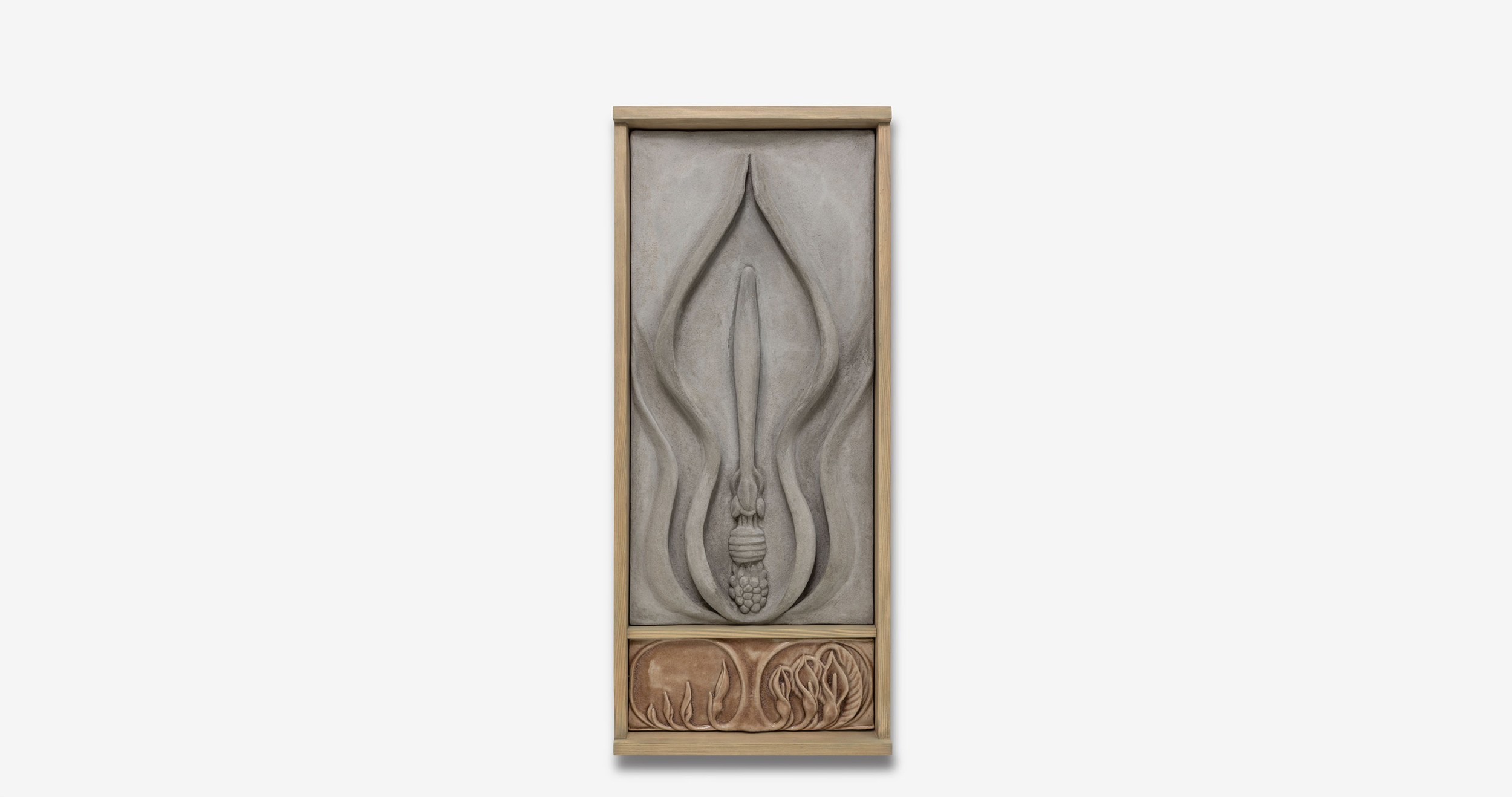“Chacune des espèces est un patchwork de morceaux prélevés sur d’autres espèces. Nous, les espèces vivantes, n’avons jamais cessé de nous échanger des pièces, des lignes, des organes”¹ Pour l’espace signature de la galerie, Le salon, le duo d’artiste Xolo Cuintle présente la série “1 and 1 is 3”, une série de bas relief bi-composites béton et céramique. Ces planches botaniques à caractère diachronique illustrent comment deux vies co-dépendantes se synchronisent autour d’un seul et même cycle au point de ne former qu’un seul et même corps. Tandis que le Geai (Garrulus glandarius), ce petit oiseau de la famille des Corvidés, en enterrant les graines de l’hêtre (Fagus sylvatica) afin de se constituer des réserves pour l’hiver, les sème, la Chiastochète (Chiastocheta), cette petite mouche de la famille des Anthomyiidae, est attirée par le Trolle d’Europe (Trollius europaeus) dans lequel elle trouvera son nid pour pondre ses larves tout en permettant à la fleur de se polliniser. Tous ces engrenages organiques témoignent du cycle reproductif précaire à la base de notre écosystème. La promiscuité de ces vies symbiotiques inspire au duo un nouveau répertoire iconographique et ornemental. Ces combinaisons mêlant faune et flore sont à l’origine d’une nouvelle typologie d’espèces hybrides : Garrulus Fagus, Chiastocheta Europaeus, Cypripedium Vatia, Phengaris Vulgaris… [1. Emanuèle Coccia, Métamorphoses, Payot & Rivages, Paris, 2020, p.14-15]