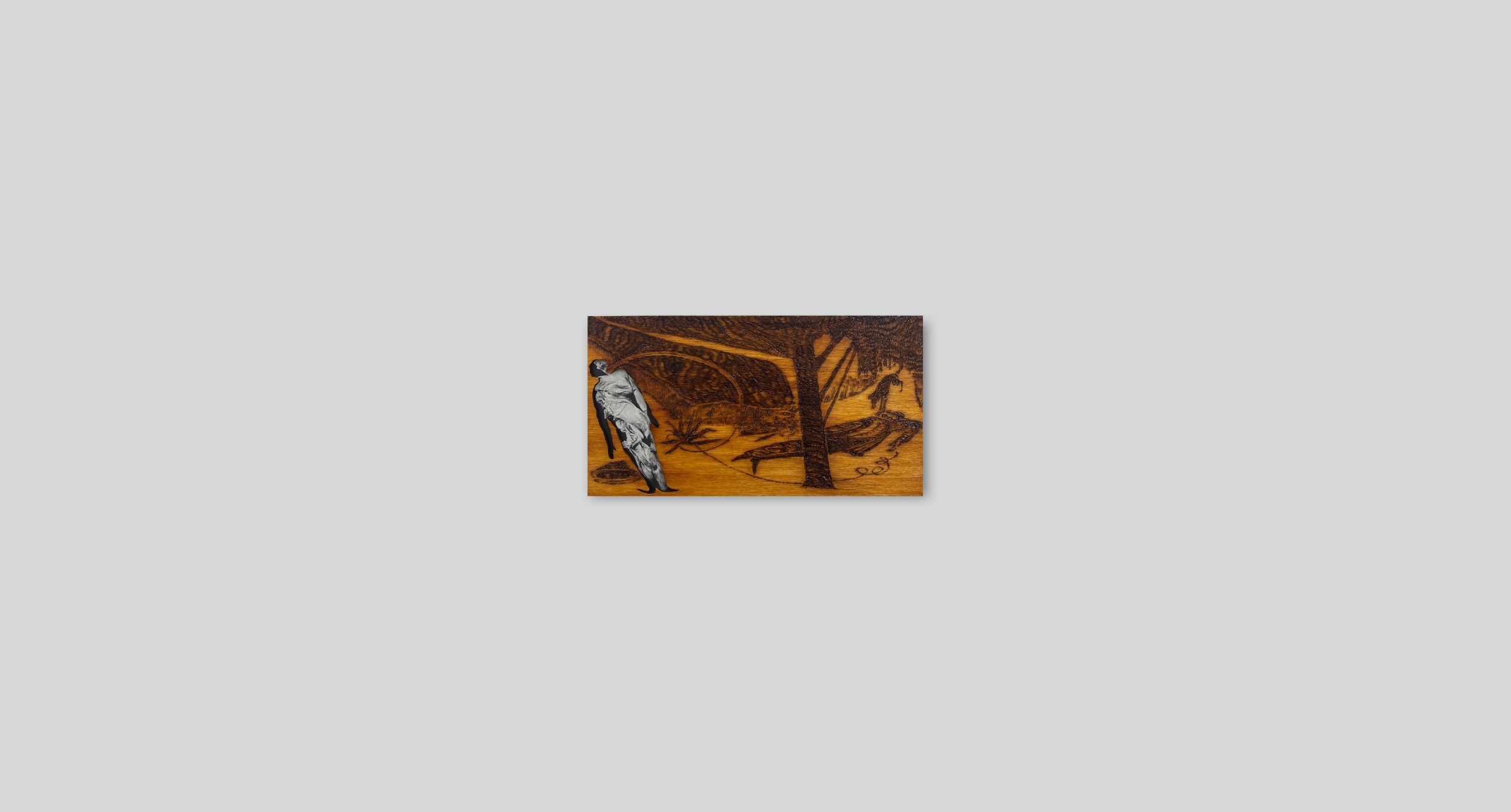 Pyrographie, contreplaqué, collage,