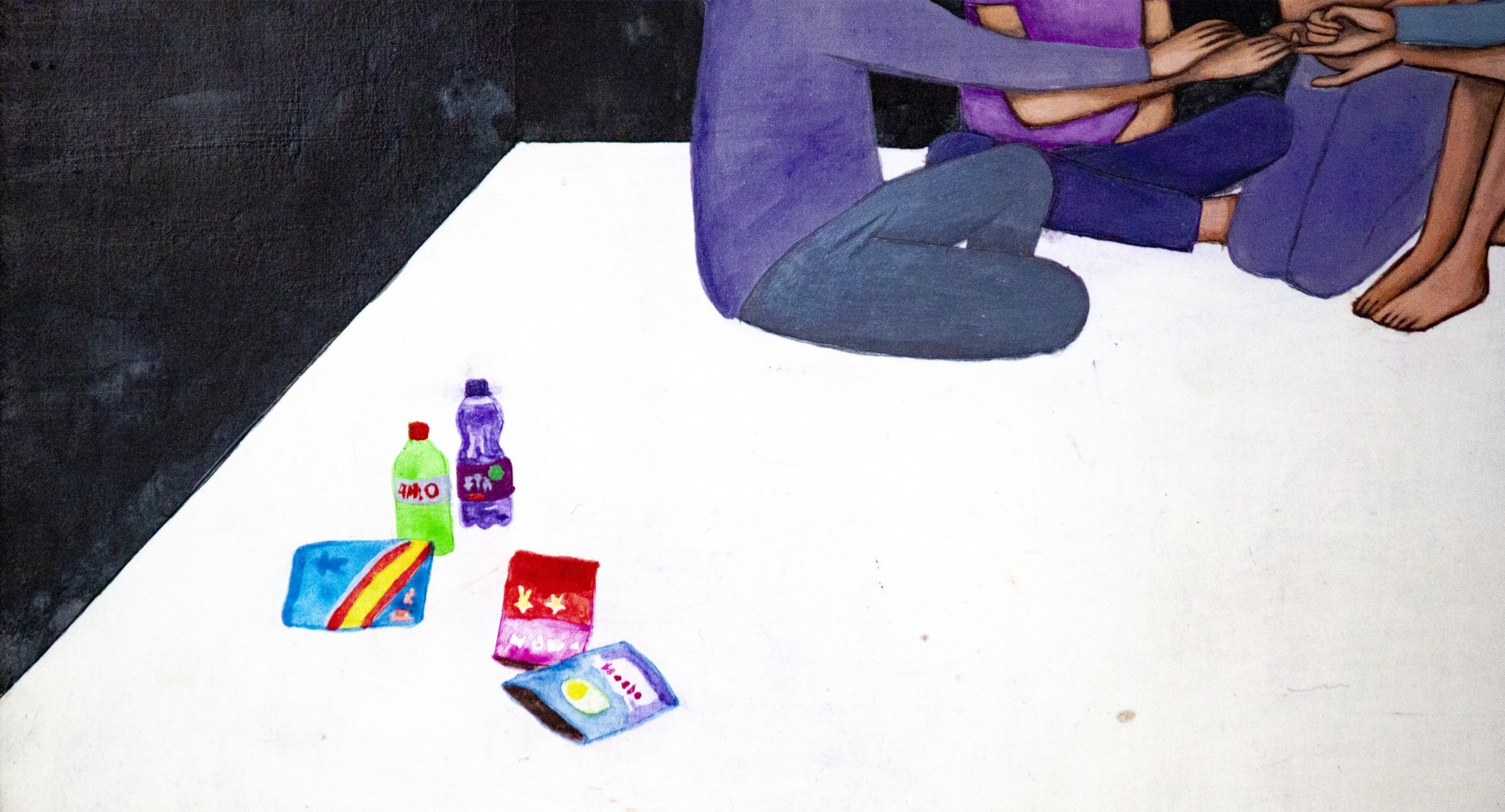 Diplômée des Beaux-Arts de Cergy (2021), Amélie Bigard développe une pratique artistique qui prend forme essentiellement avec la peinture, mais également avec la vidéo et l’installation. Empruntant à l’art de l’icône la technique de la tempera sur bois, l’utilisation de la feuille d’or ou les postures quasi religieuses de ses sujets, elle présente des “icônes d’un monde sans dieu”, qui semblent trouver refuge dans la réunion et le jeu. Plus d’infos