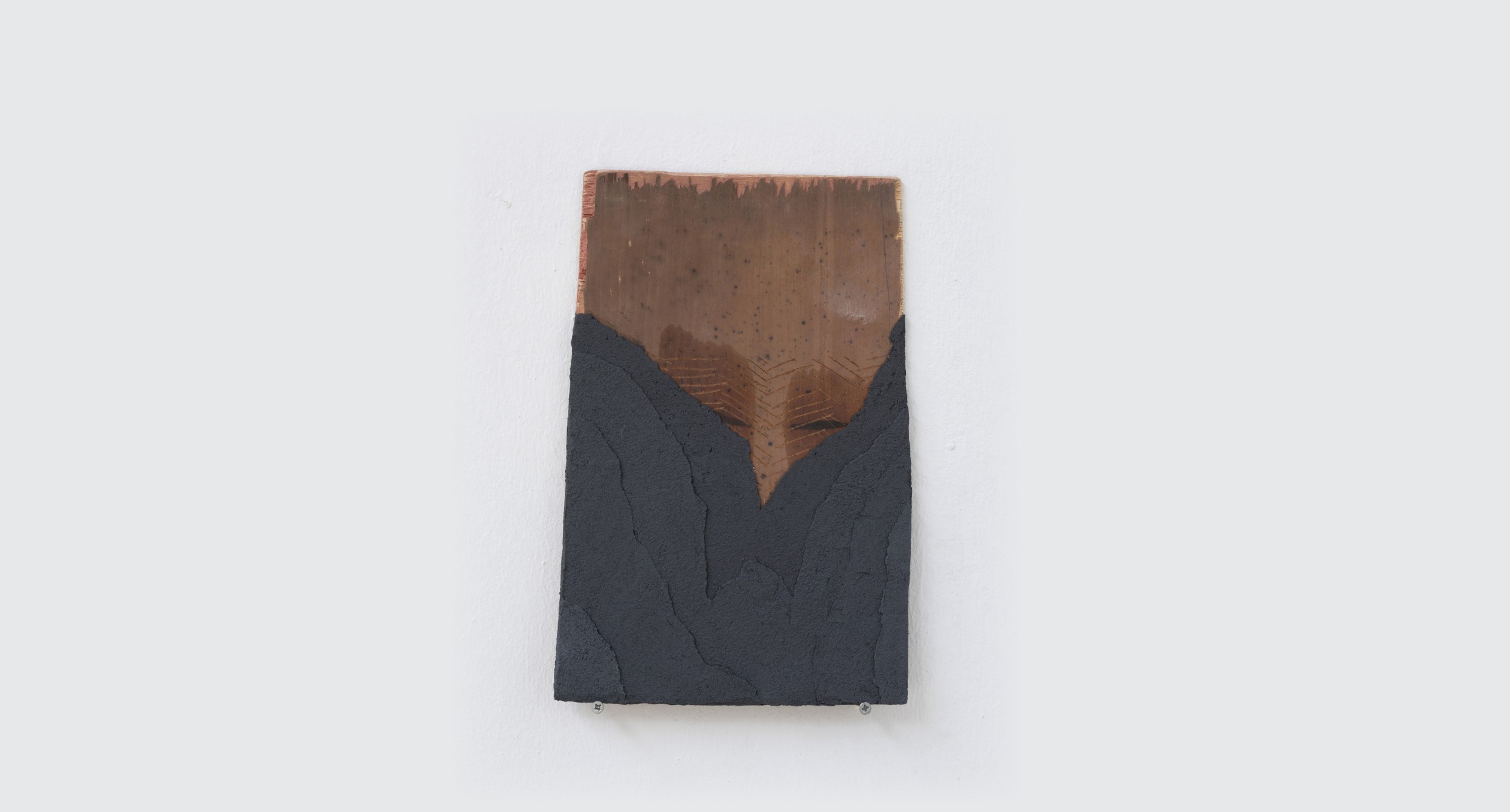Sable volcanique noir, suie, argile, huile de lin, contreplaqué